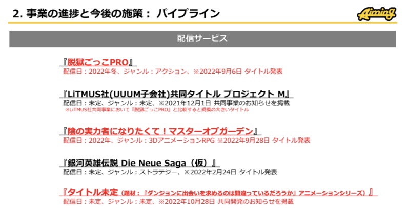 Going back even further to Aiming’s second and third quarter reports for 2022, we can see that The Eminence in Shadow: Master of Garden was originally codenamed “Project S.”