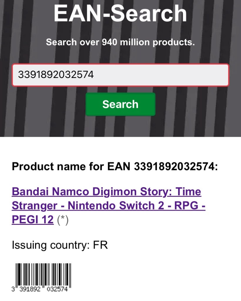EAN numbers are extensions of the UPC codes found on barcodes on everyday items. No official announcement has been made by Bandai Namco as of this post.