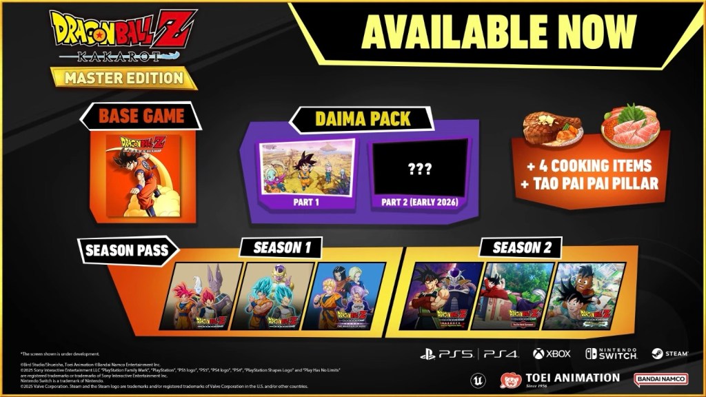 The Dragon Ball Z: Kakarot “Master Edition” includes all DLC up to the DAIMA Pack.