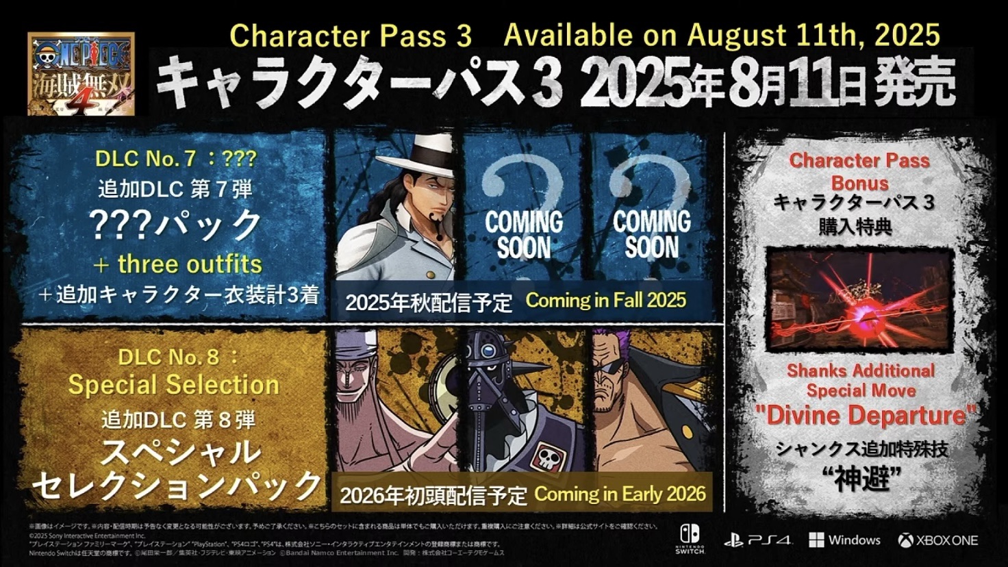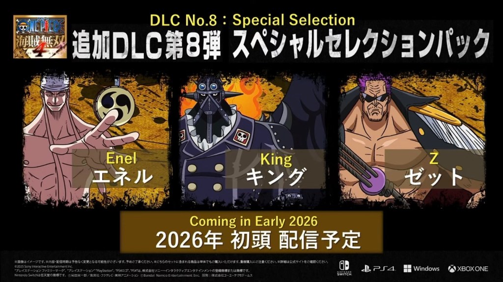 DLC 8: A “Special Selection” Pack featuring the winners of the One Piece: Pirate Warriors 4 character vote — Early 2026