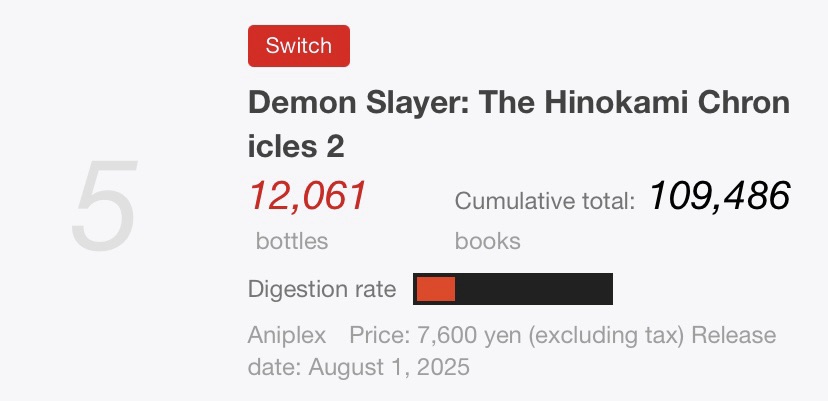Meanwhile, the Switch version of Demon Slayer: The Hinokami Chronicles 2 not only remained in Famitsu’s Top 30, but surged to No. 5, moving more than five times more copies than the last week. Hinokami 2 has now sold more than 130,000 physical copies in Japan.