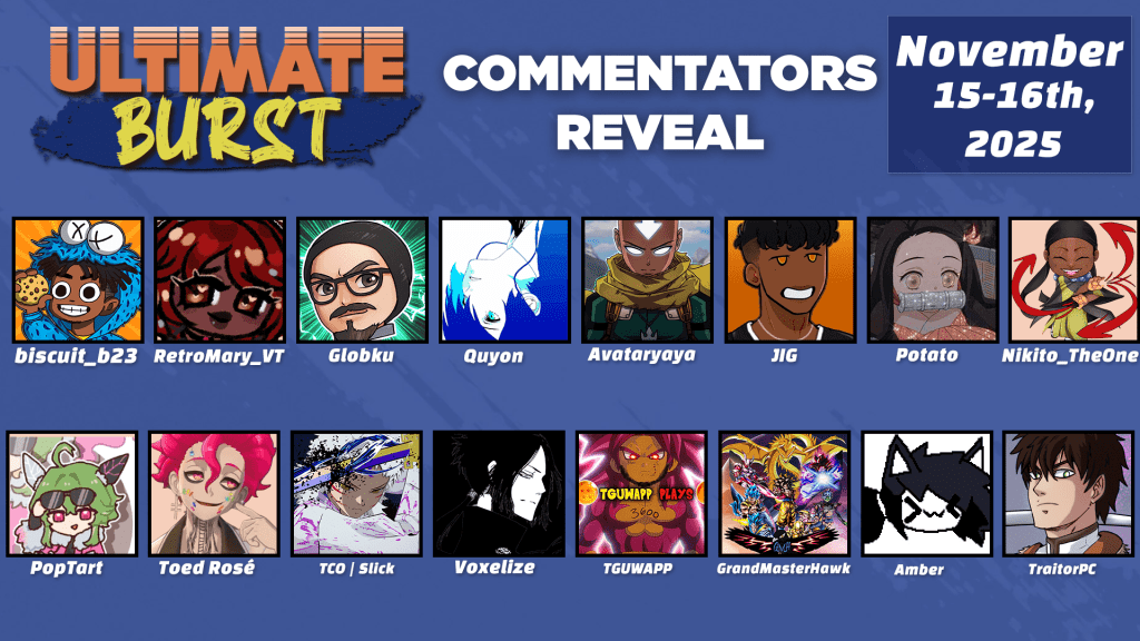 Ultimate Burst 2025, an anime fighting game tournament, will be held on November 15 and 16, 2025. Globku will be streaming the event on YouTube and Twitch.